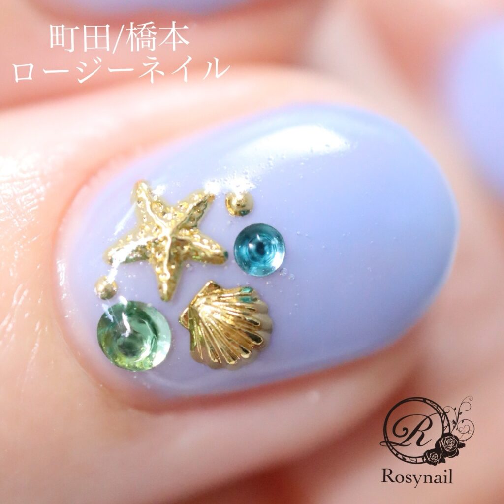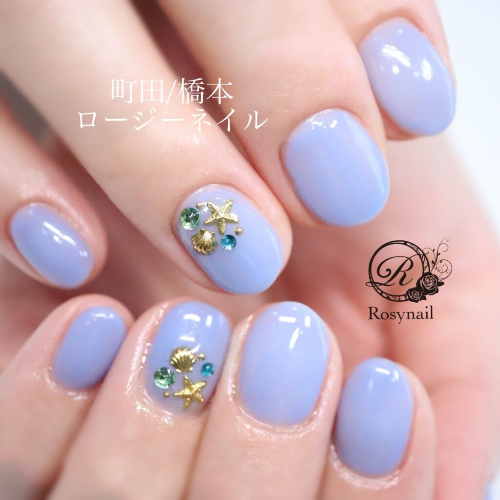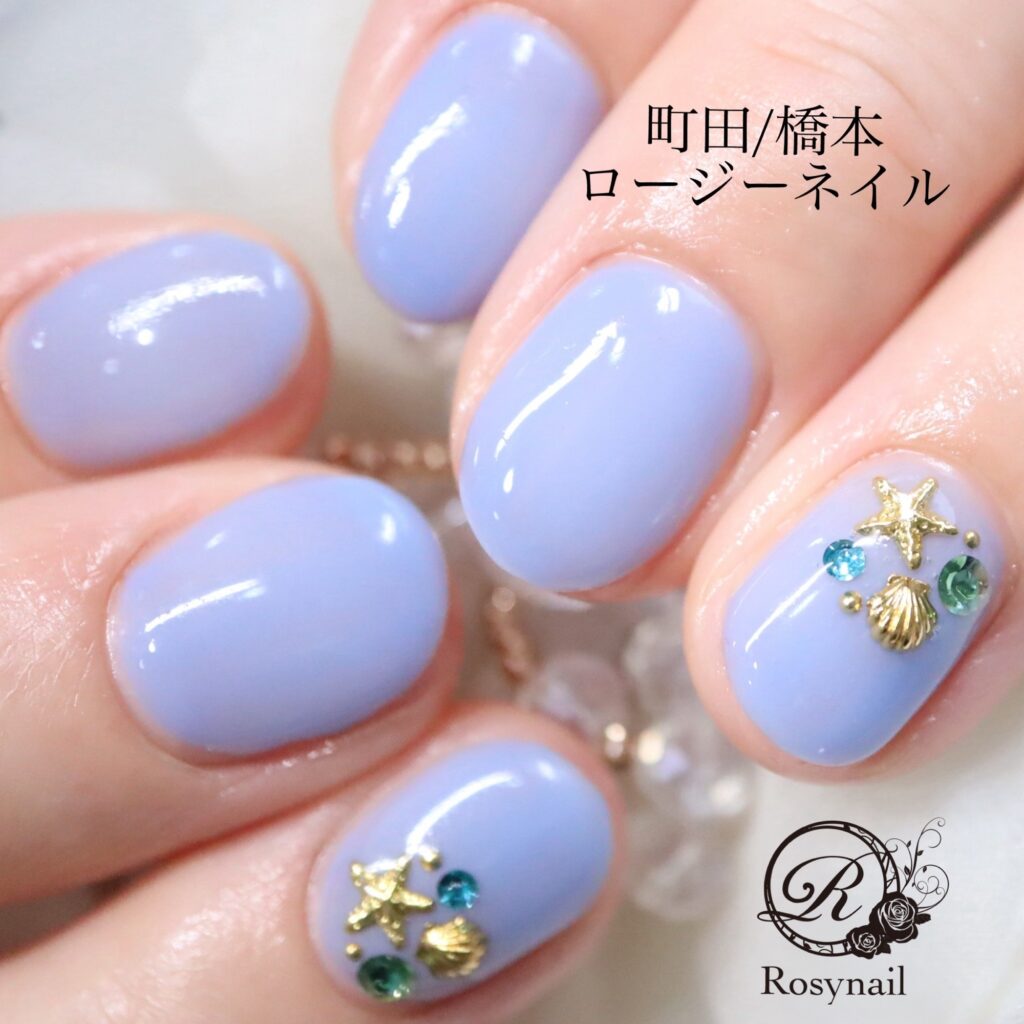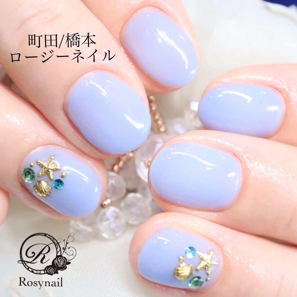 涼しげブルーのショートネイル 橋本ネイルサロン ロージーネイル