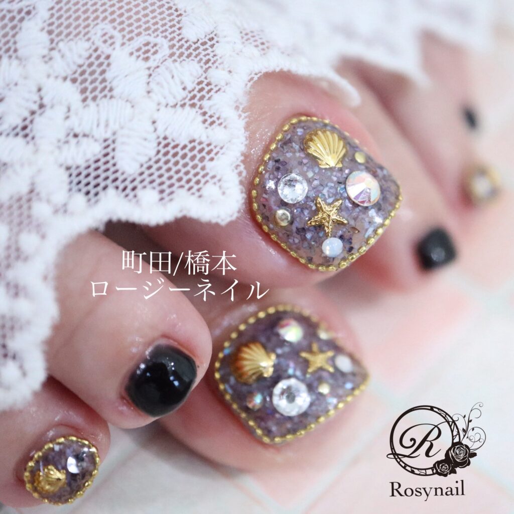 黒はハンドだと取り入れにくい方も多いと思いますが、フットならぱきっと綺麗に決まります。