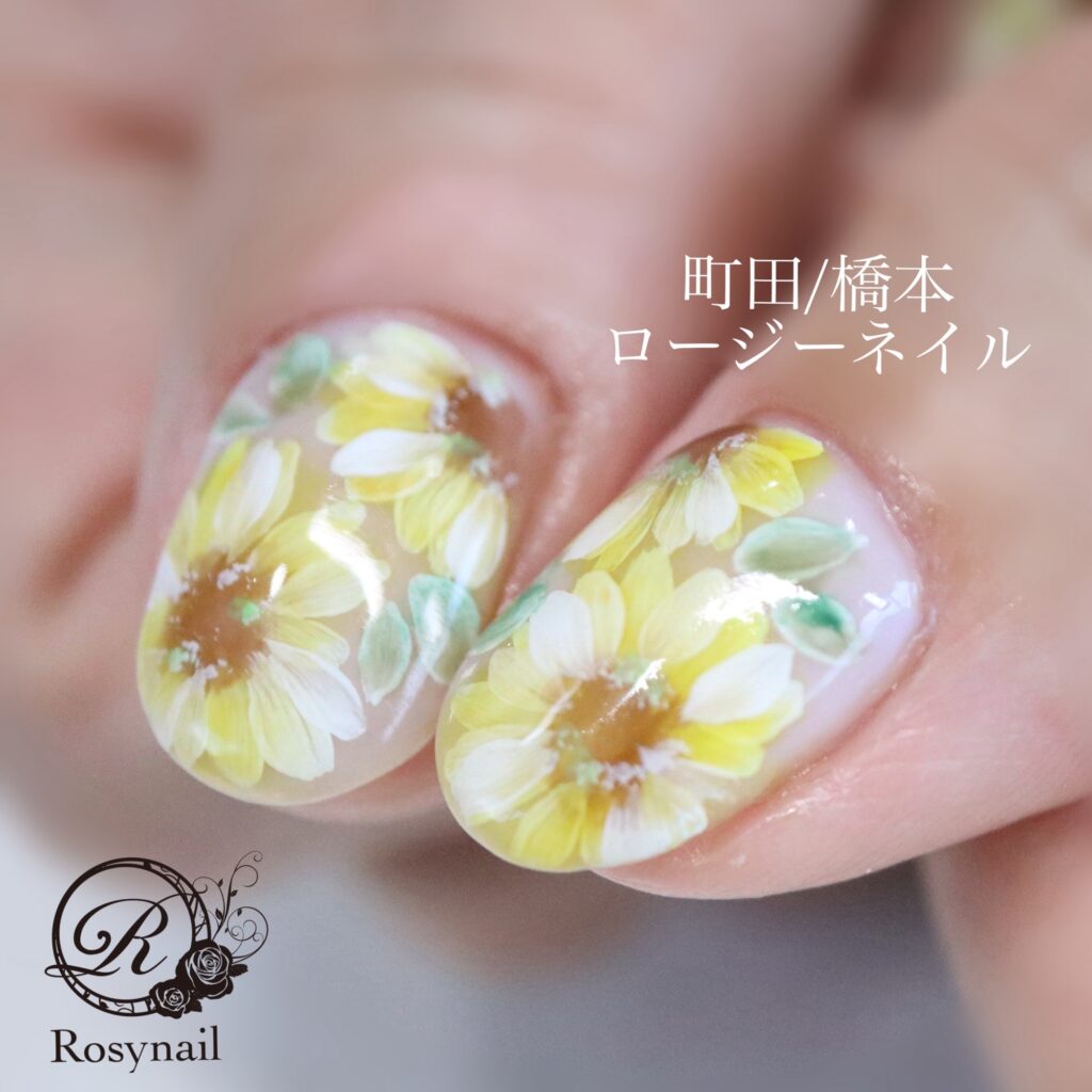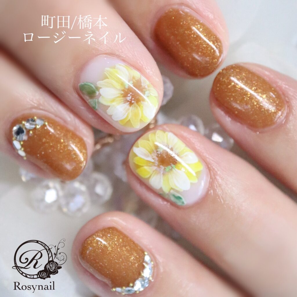 手描きひまわりを秋色と合わせて 橋本ネイルサロン ロージーネイル