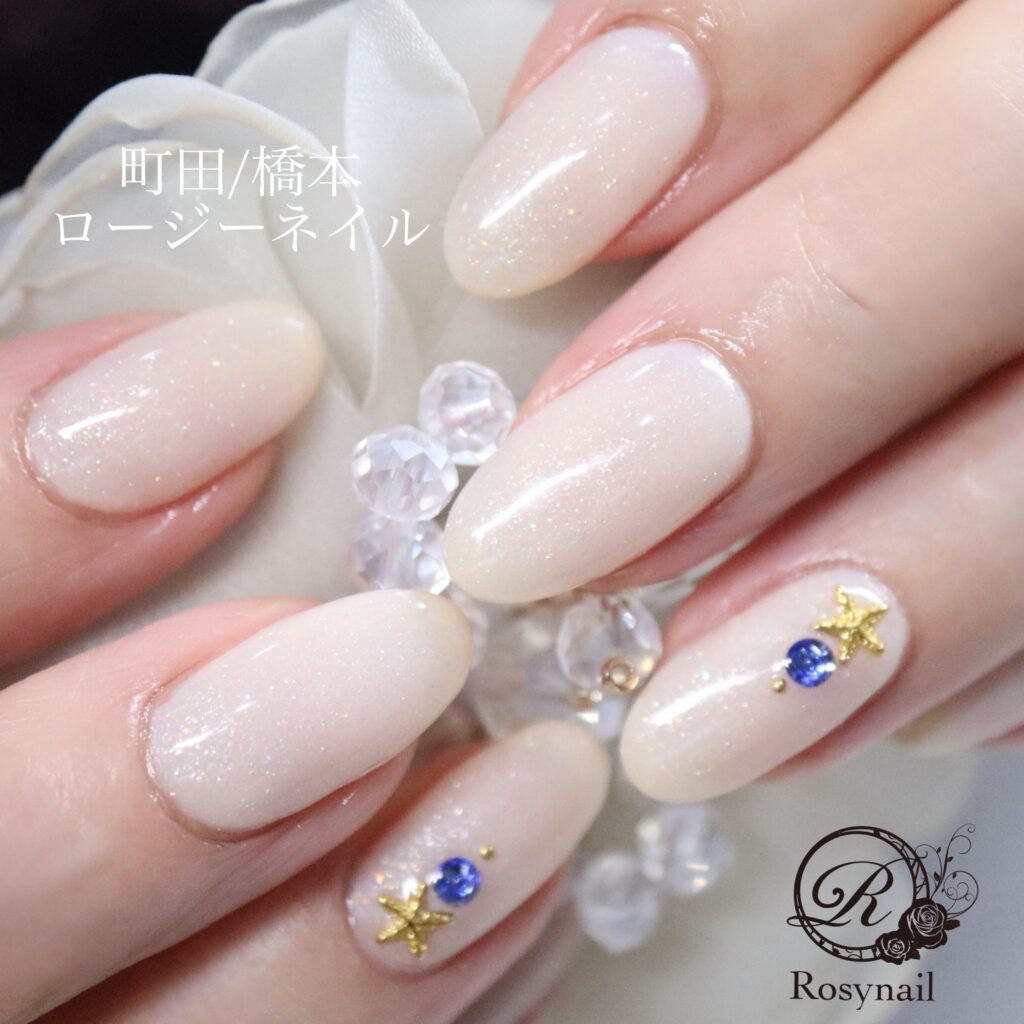オフホワイトに見えるベージュ 橋本ネイルサロン ロージーネイル