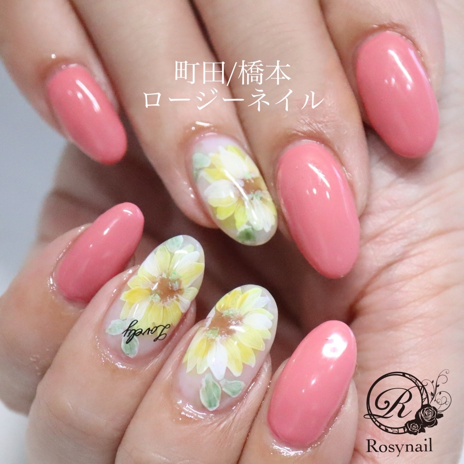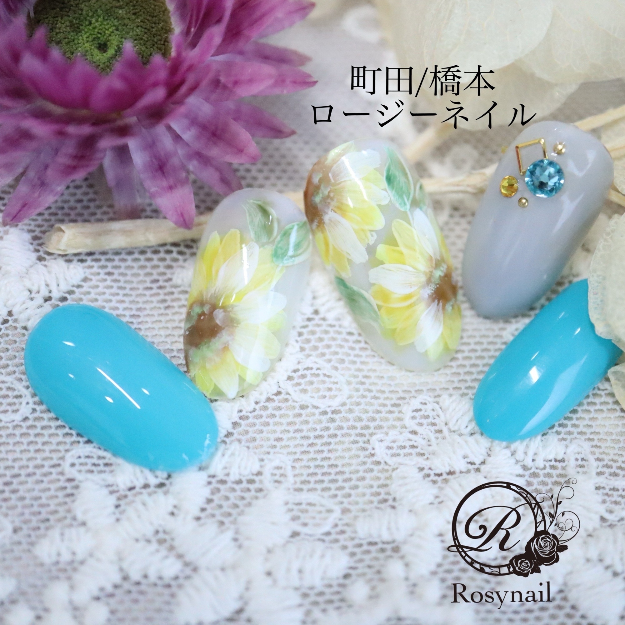 手描きひまわりネイル 橋本ネイルサロン ロージーネイル