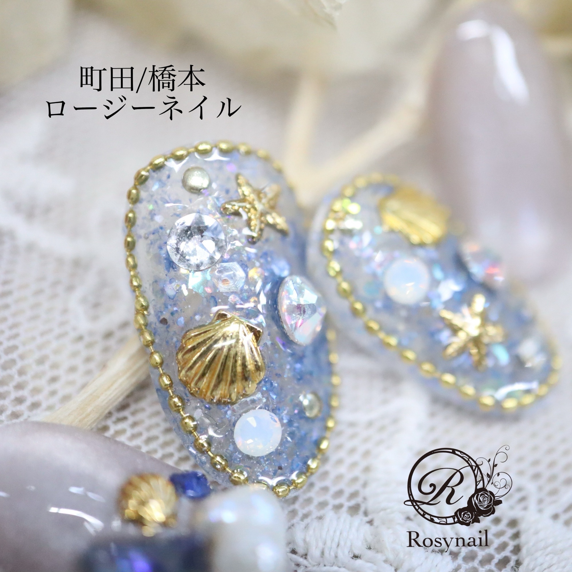 クラッシュシェルと淡水パールネイル 橋本ネイルサロン ロージーネイル