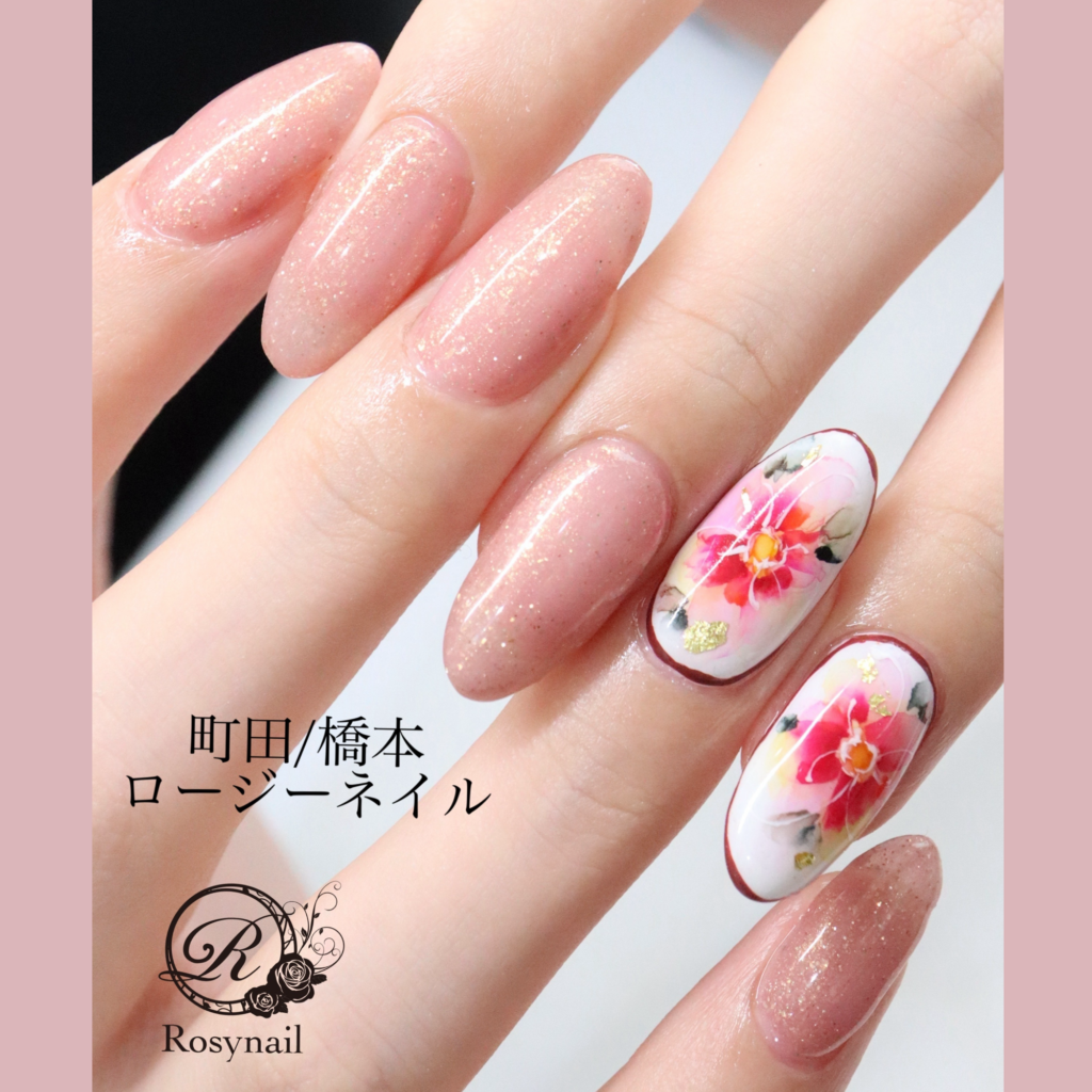 「爪を傷めず丁寧な甘皮ケアと上品で可愛い手描きフラワーアートが得意なお店♡ロージーネイル🌼」