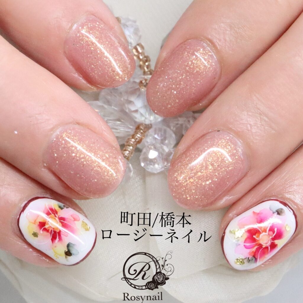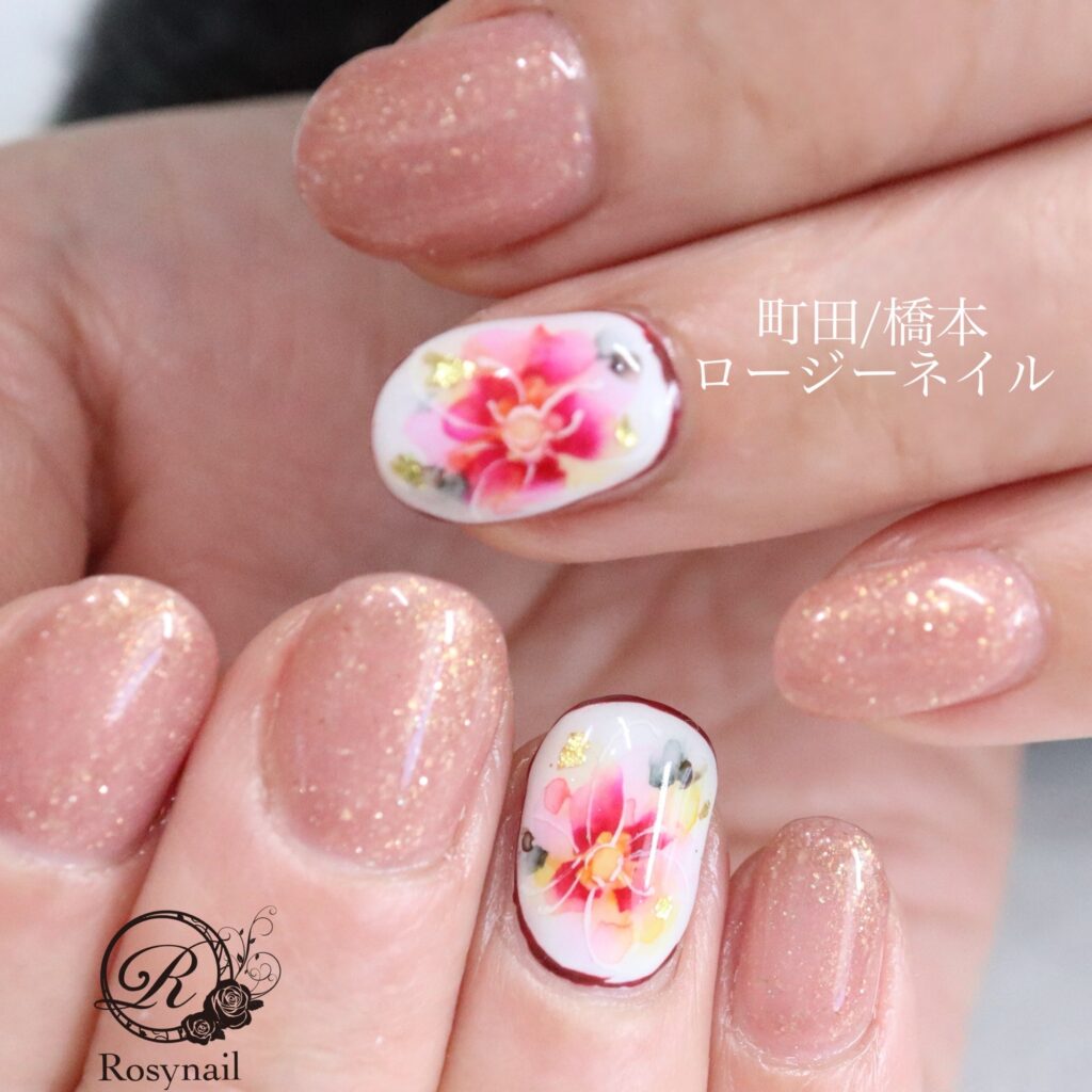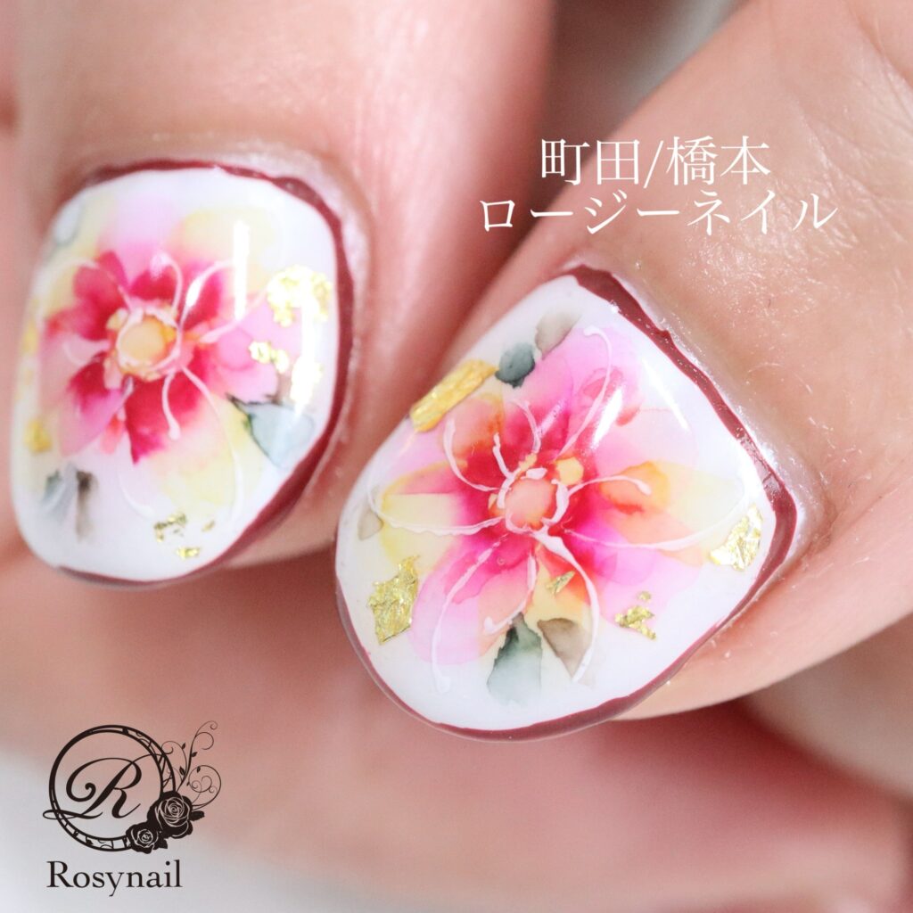 ウォーターカラーフラワー 橋本ネイルサロン ロージーネイル
