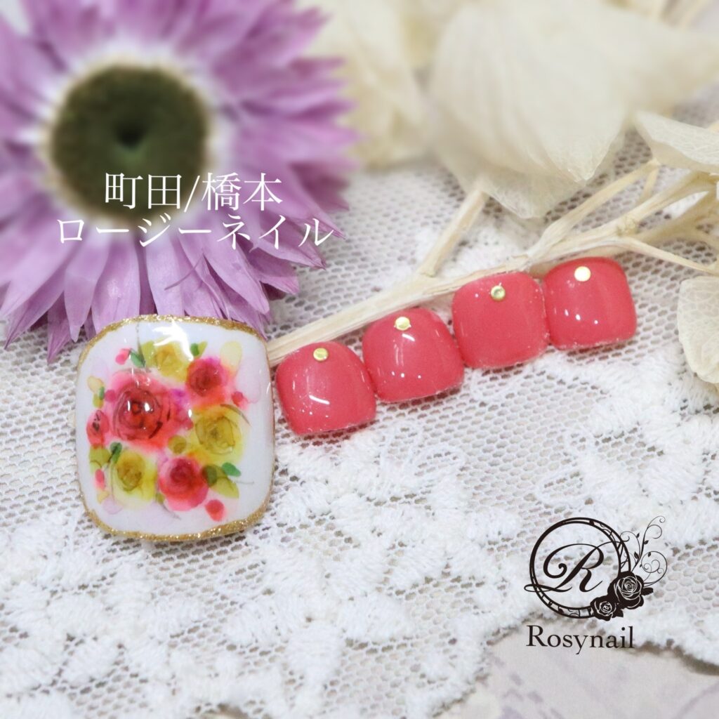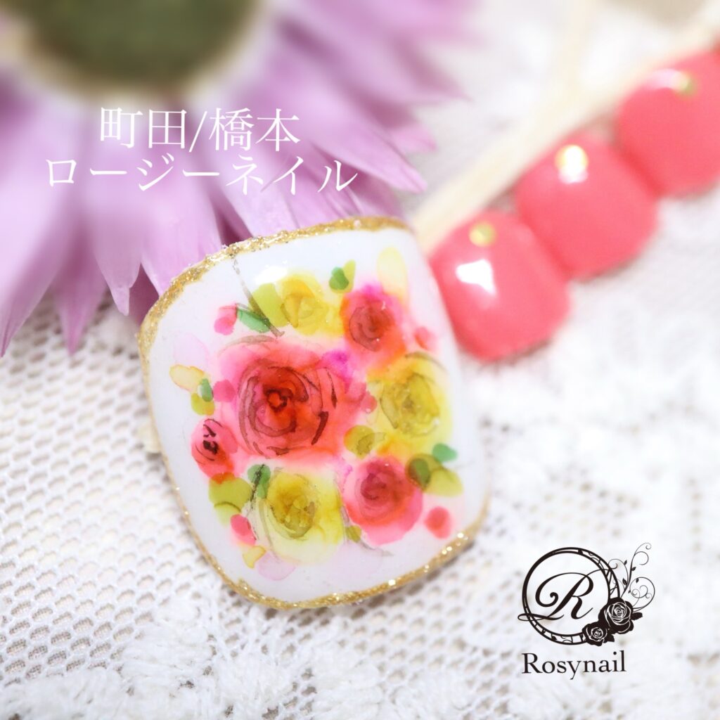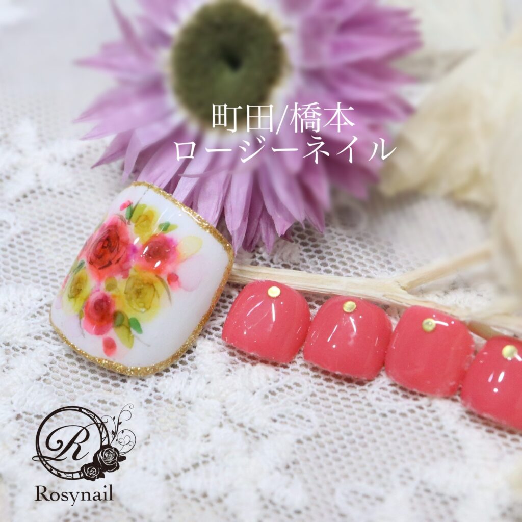 手描きフラワーネイル 橋本ネイルサロン ロージーネイル