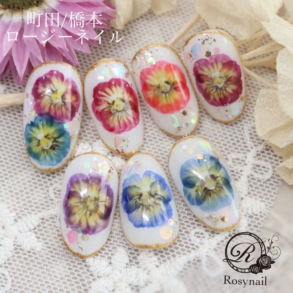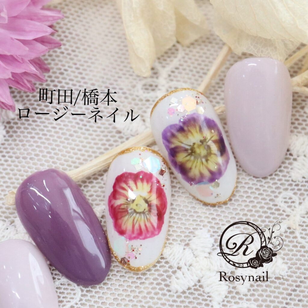 手描きパンジー 橋本ネイルサロン ロージーネイル