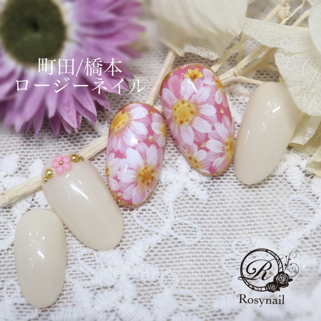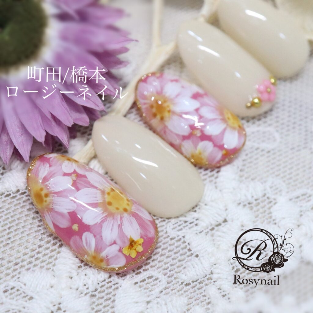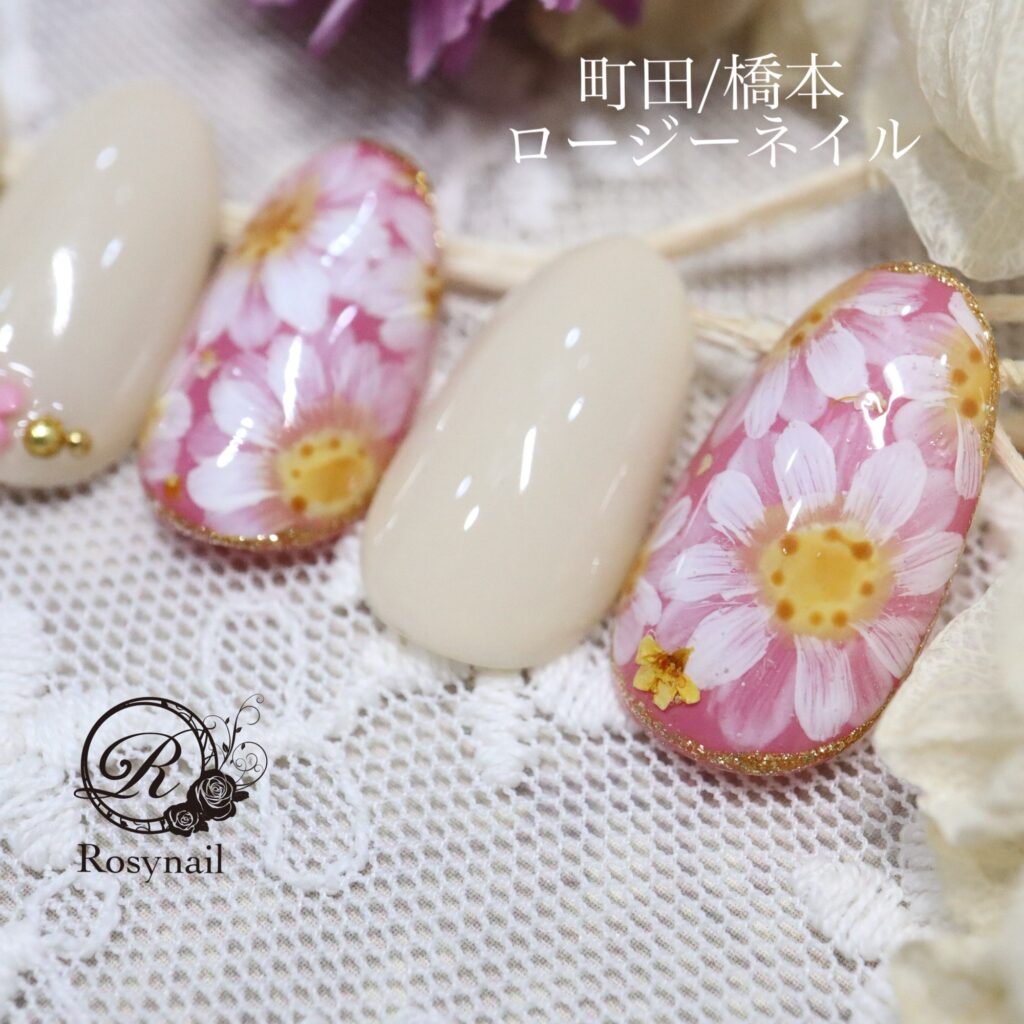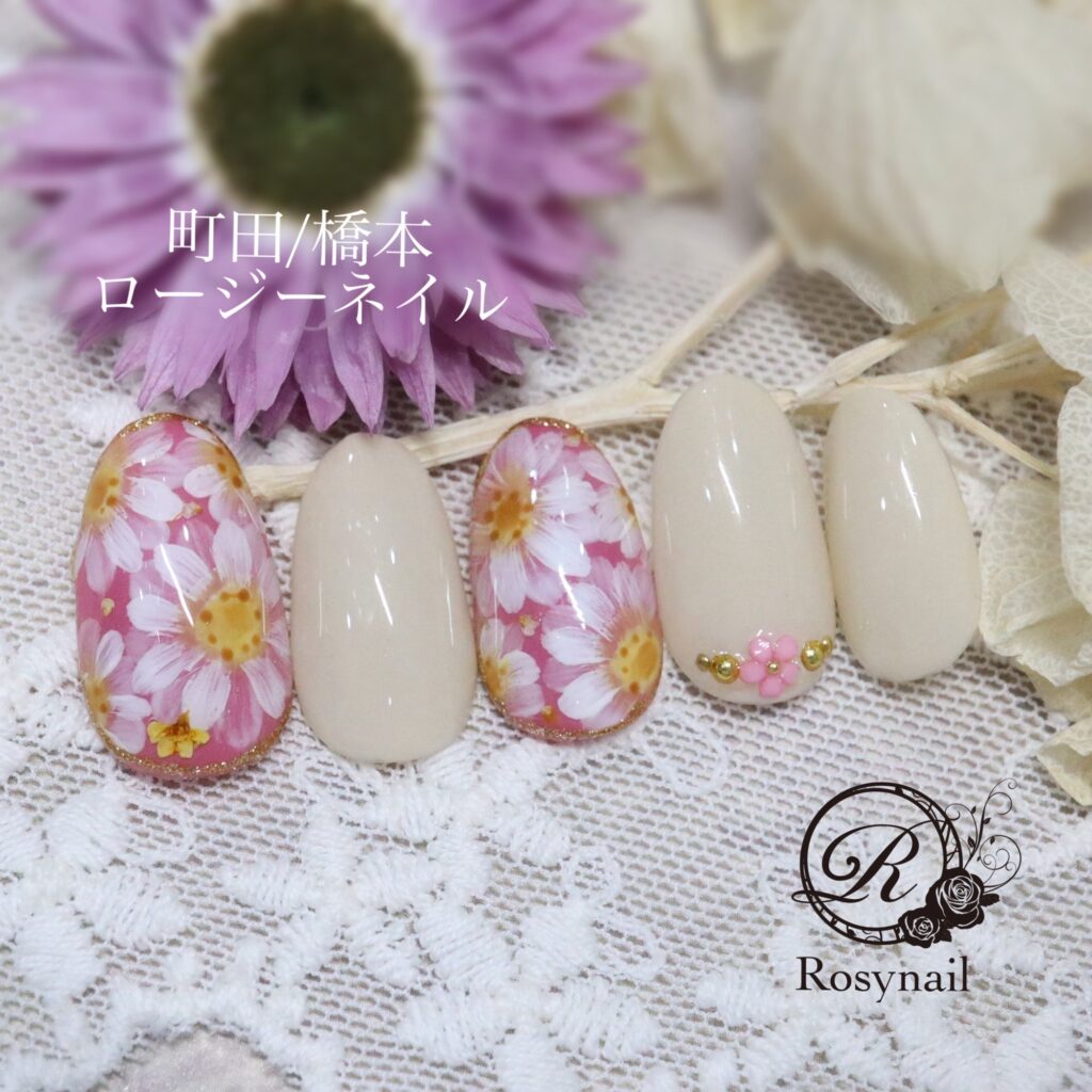 手描きマーガレット 橋本ネイルサロン ロージーネイル