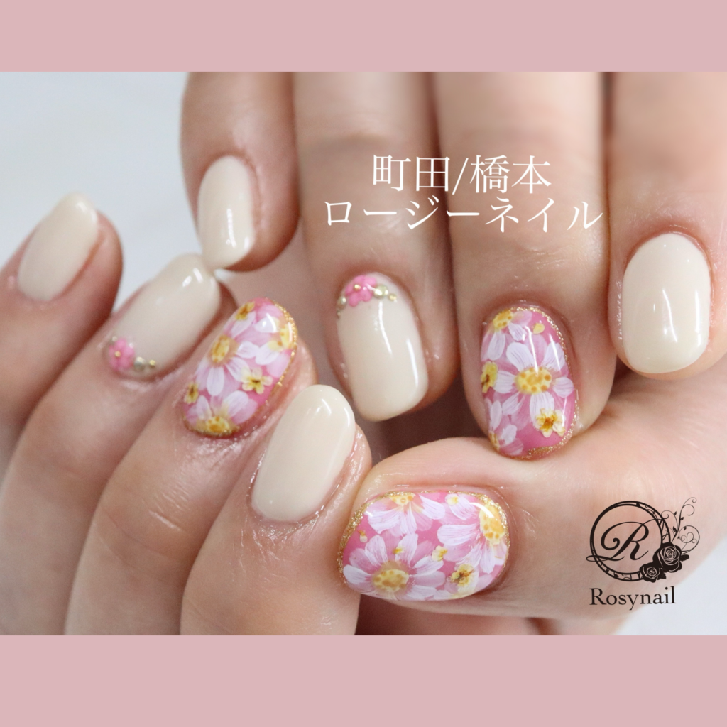 「爪を傷めず丁寧な甘皮ケアと上品で可愛い手描きフラワーアートが得意なお店♡ロージーネイル🌼」