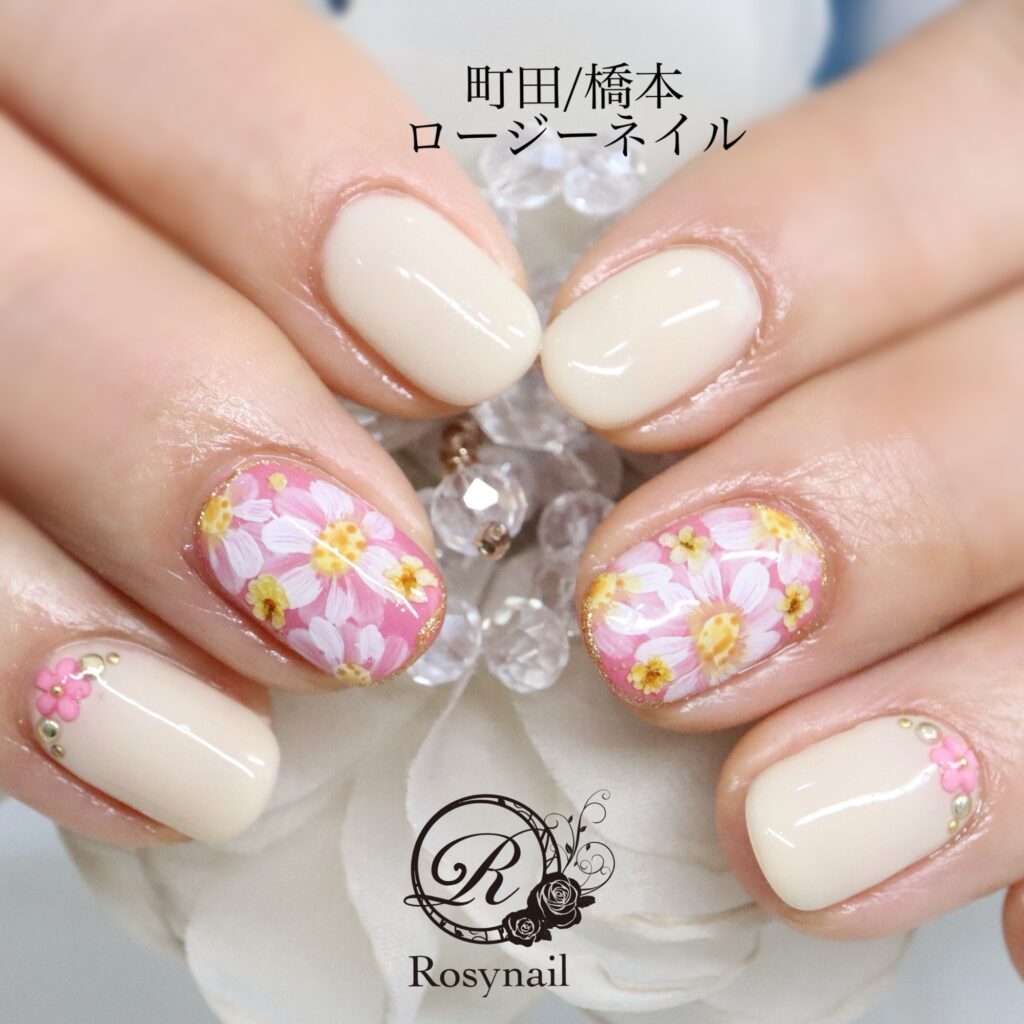 手描きマーガレット 橋本ネイルサロン ロージーネイル