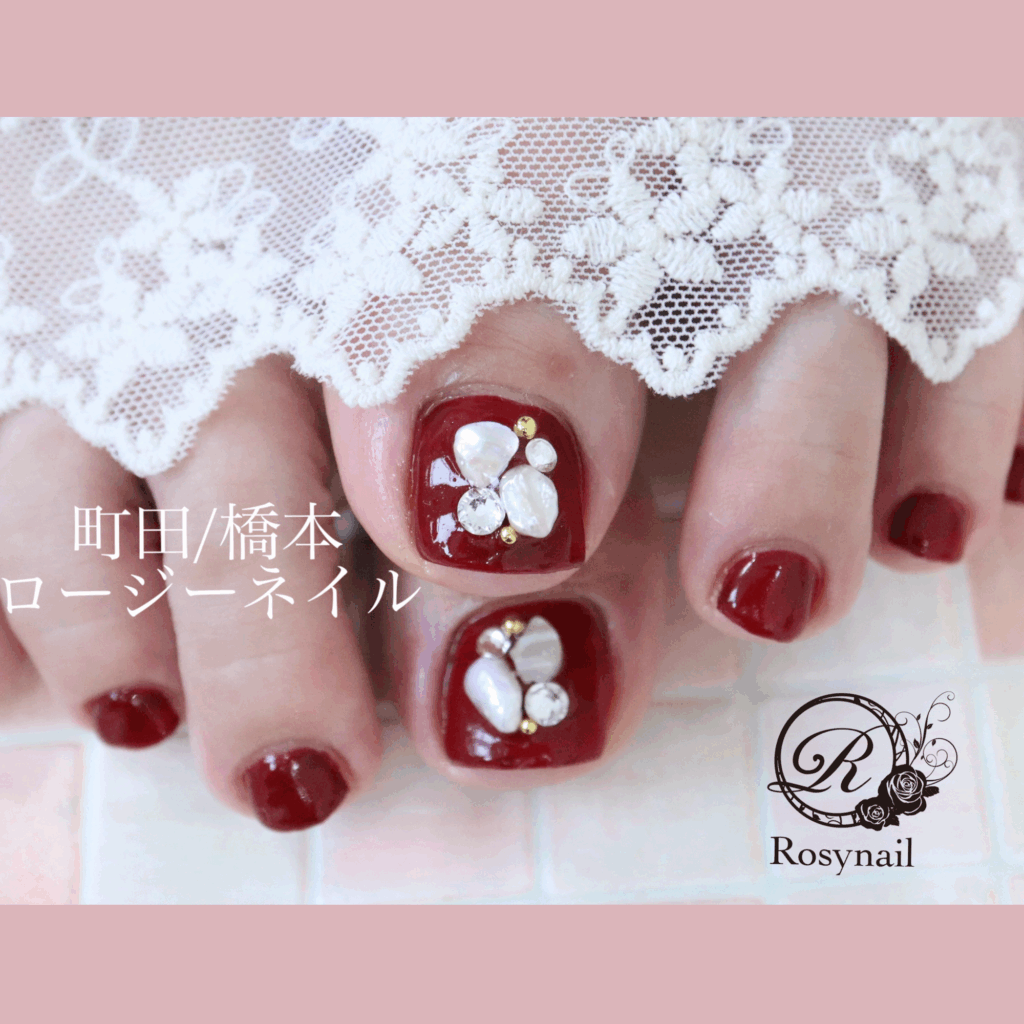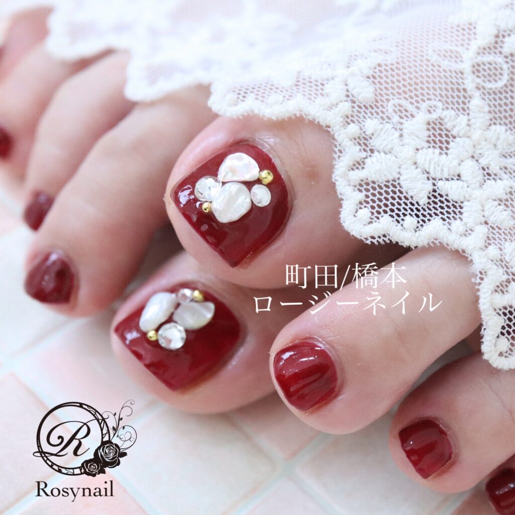 本物の貝殻と淡水パールを使ったキラキラネイル。