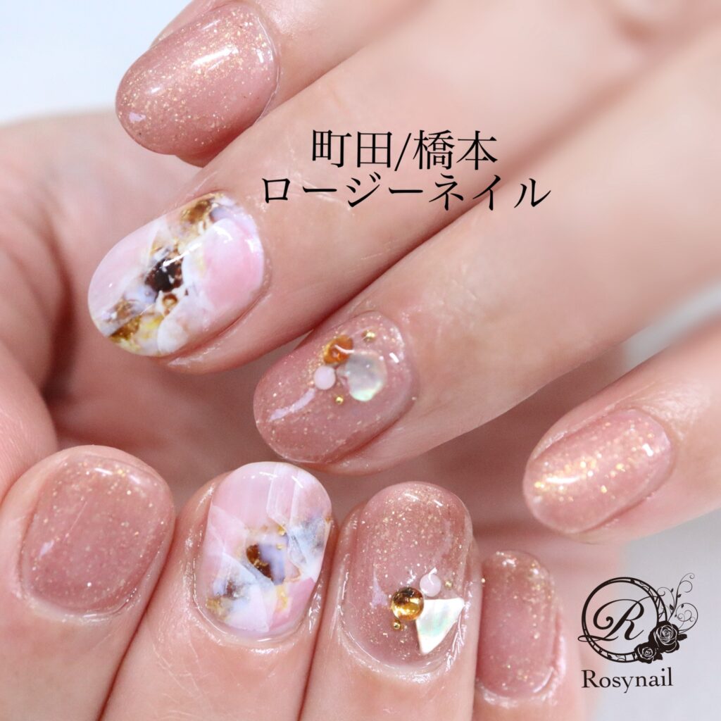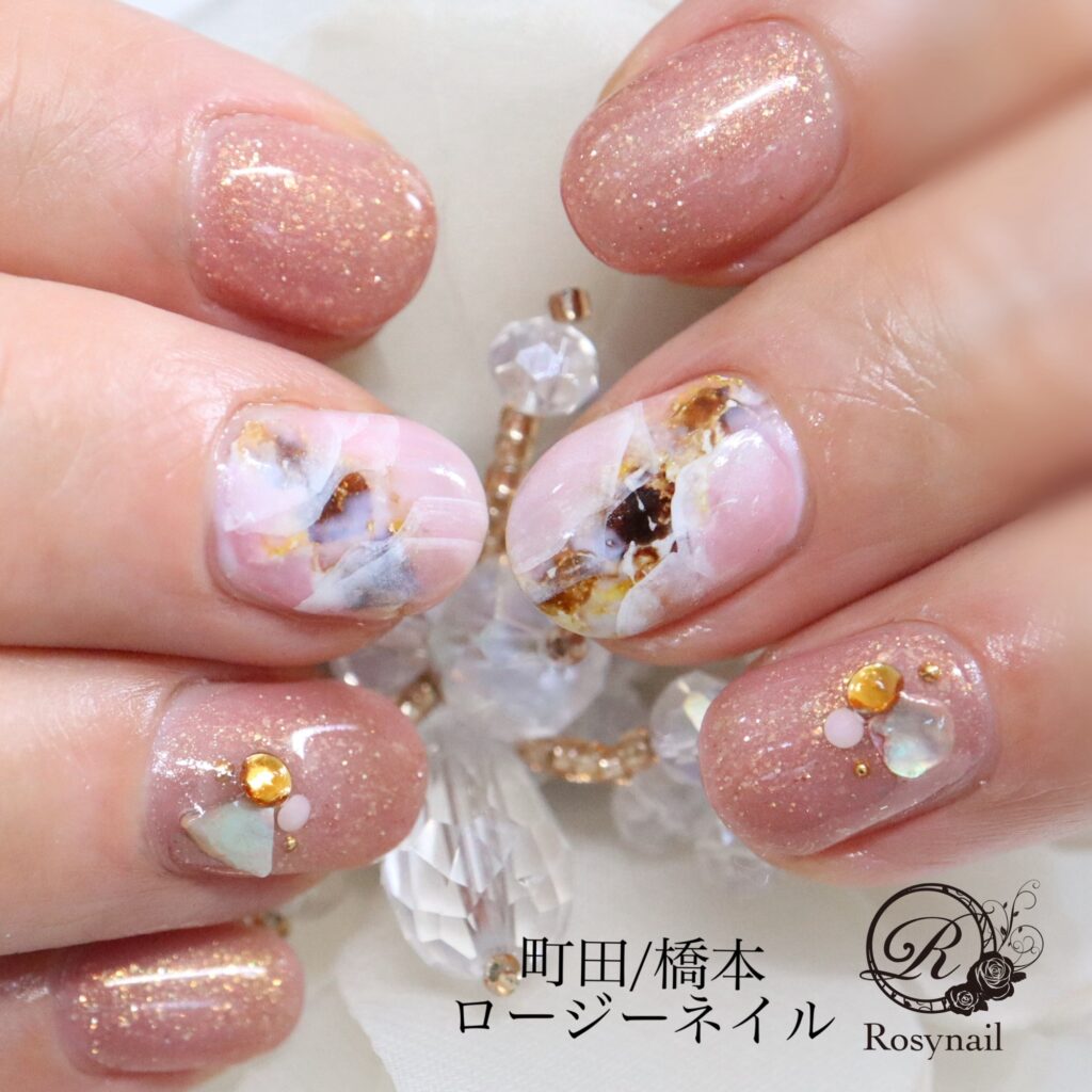 しゃりしゃりジェル、インク、絵の具など色んなテクニックが入っています。
