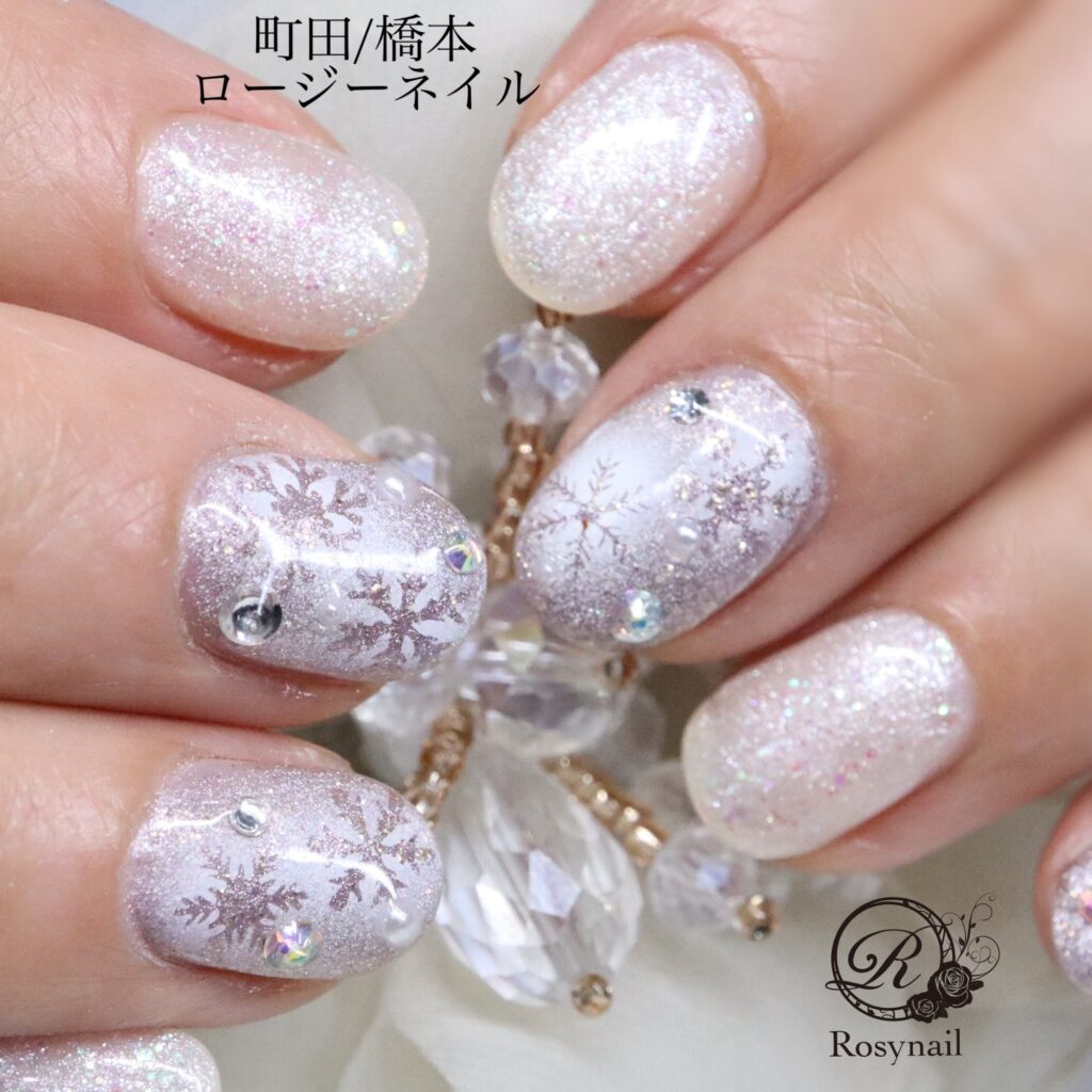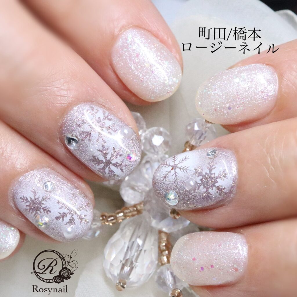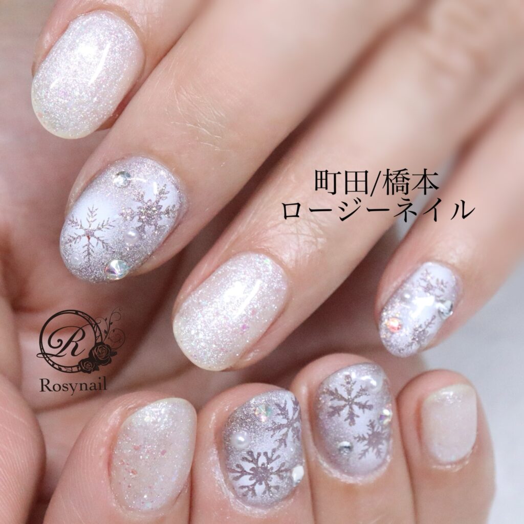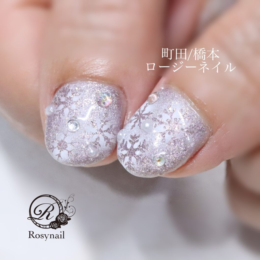 ショートネイルさんにも雪の結晶ネイル 橋本ネイルサロン ロージーネイル