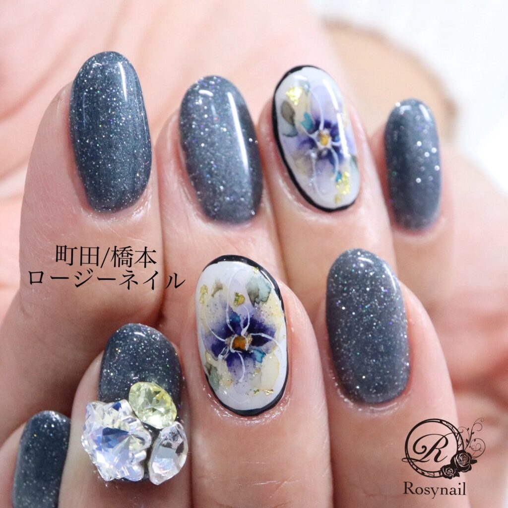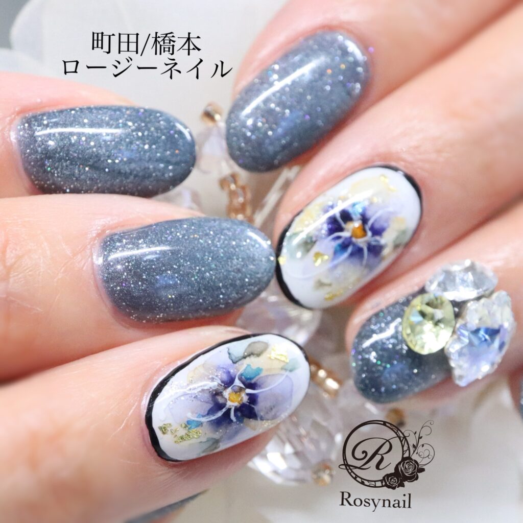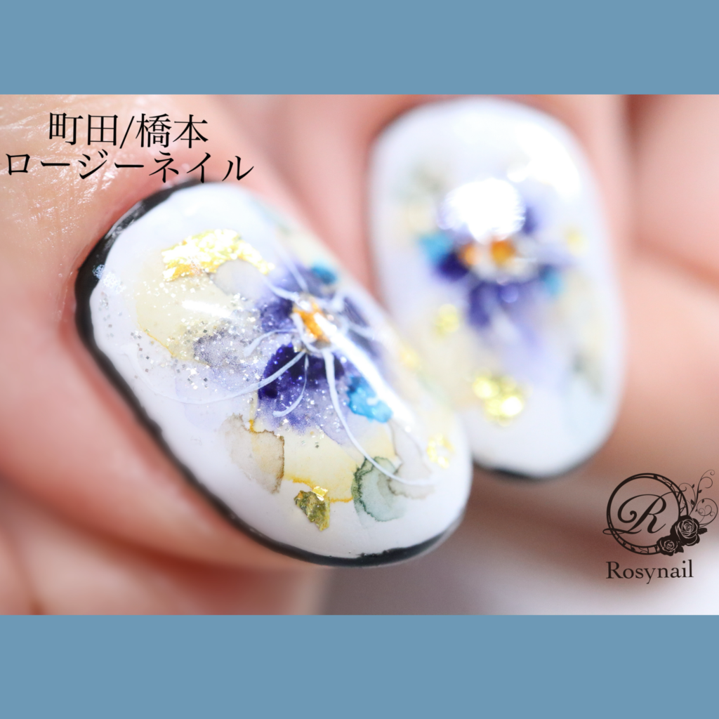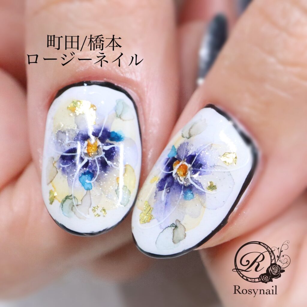 水彩和柄ネイル 橋本ネイルサロン ロージーネイル