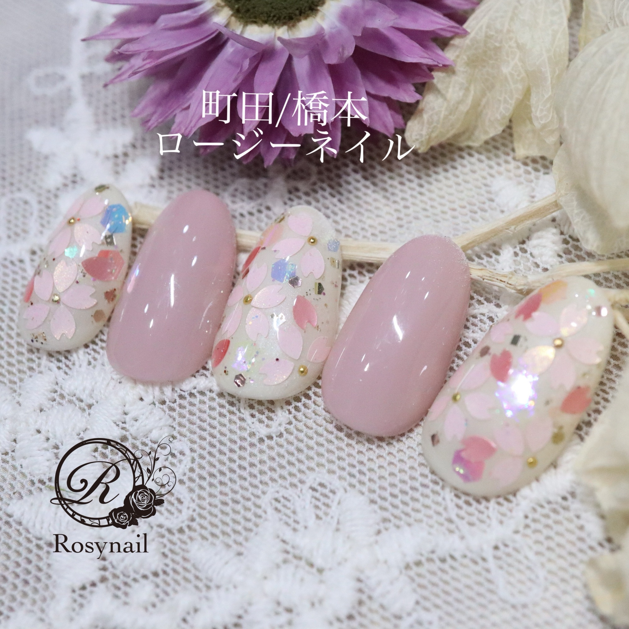 桜のホログラムネイル 橋本ネイルサロン ロージーネイル